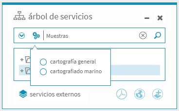 • Visualizar y añadir en la aplicación del Visor de Cartografiado Marino, pulse el botón añadir servicioPanel de servicios de mapa.