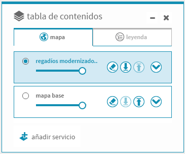 Sobre dichas capas el usuario tiene la opción de poder cambiar el orden de visualización de los mismos mediante los botones Subir