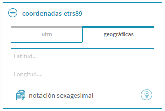 Para realizar una búsqueda por coordenadas ETRS89 el buscador ofrece dos opciones: