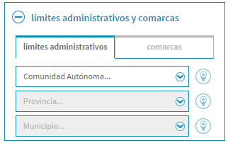 Para realizar búsquedas por Comarca, previamente es necesario tener seleccionada en la pestaña de Límites Administrativos la CCAA y Provincia de la comarca Agrícola o Ganadera a localizar.
